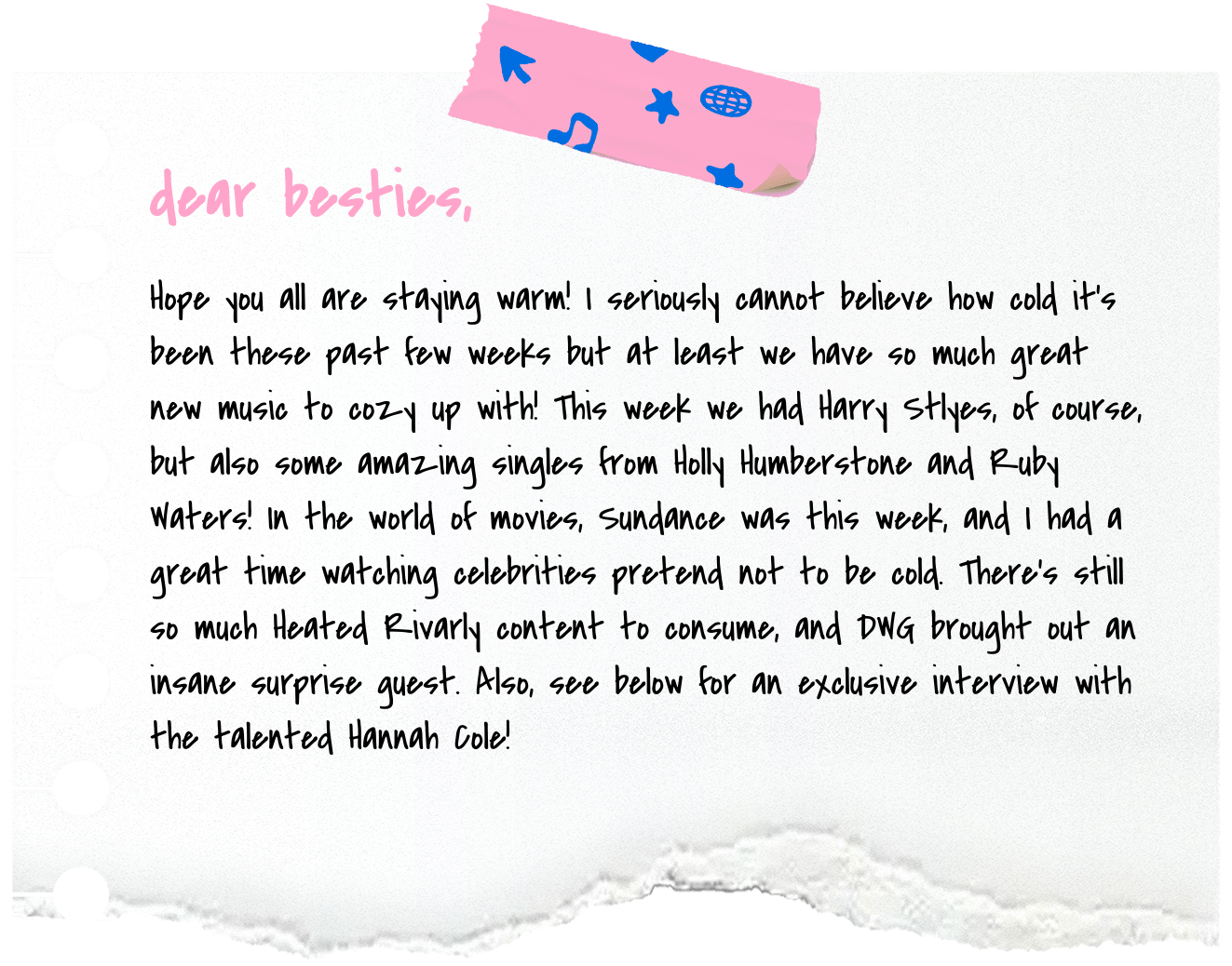 This was so sweet <3 Thanks for reading and hope to see you all soon. Can’t wait to share a bunch of new music this year!