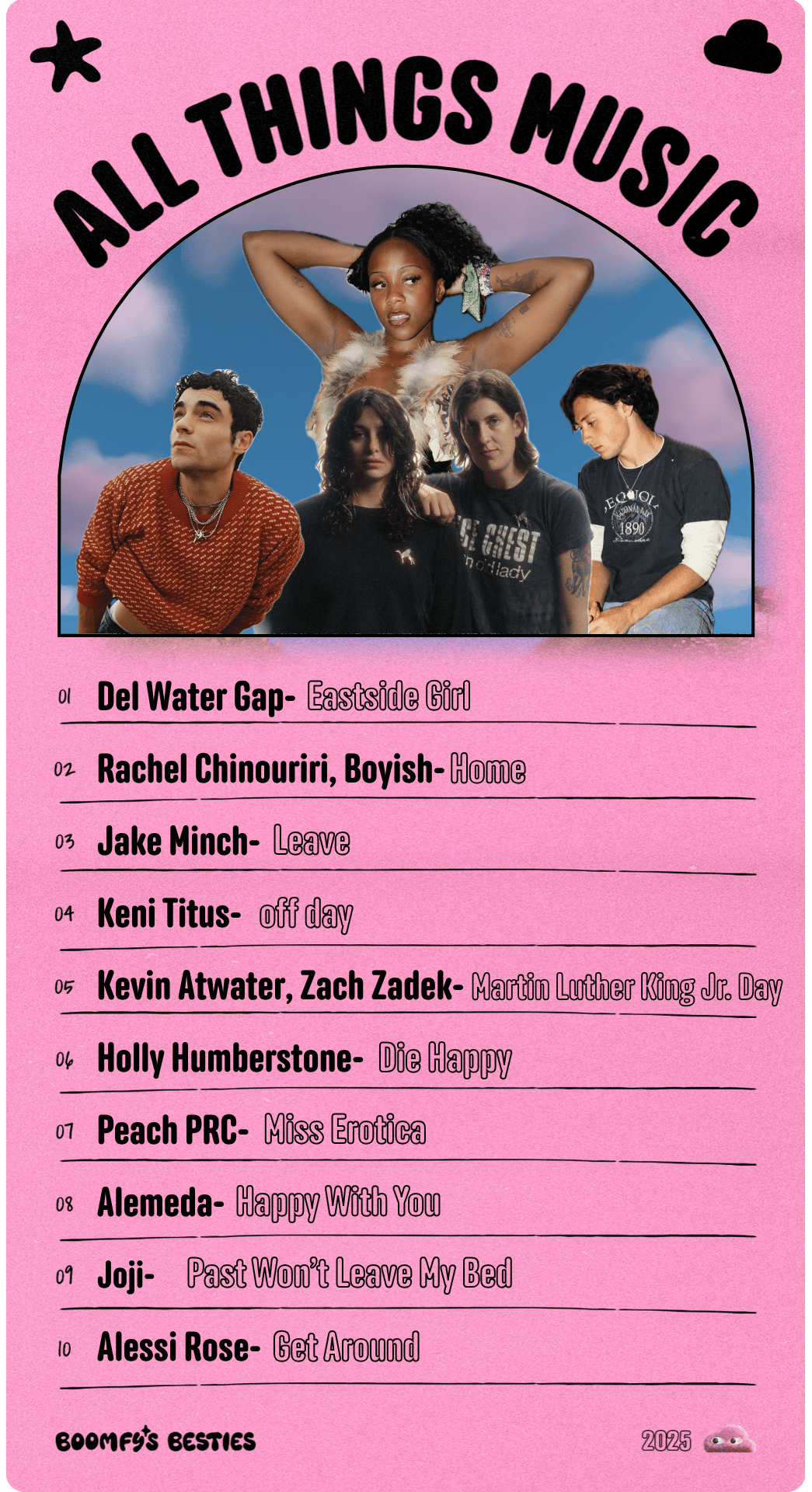 Rachel Chinouriri, Boyish- Home: What an insane collab! From the ATG 10 year compilation album, this is a beautiful, lyrically simple, and incredibly nostalgic songΒ