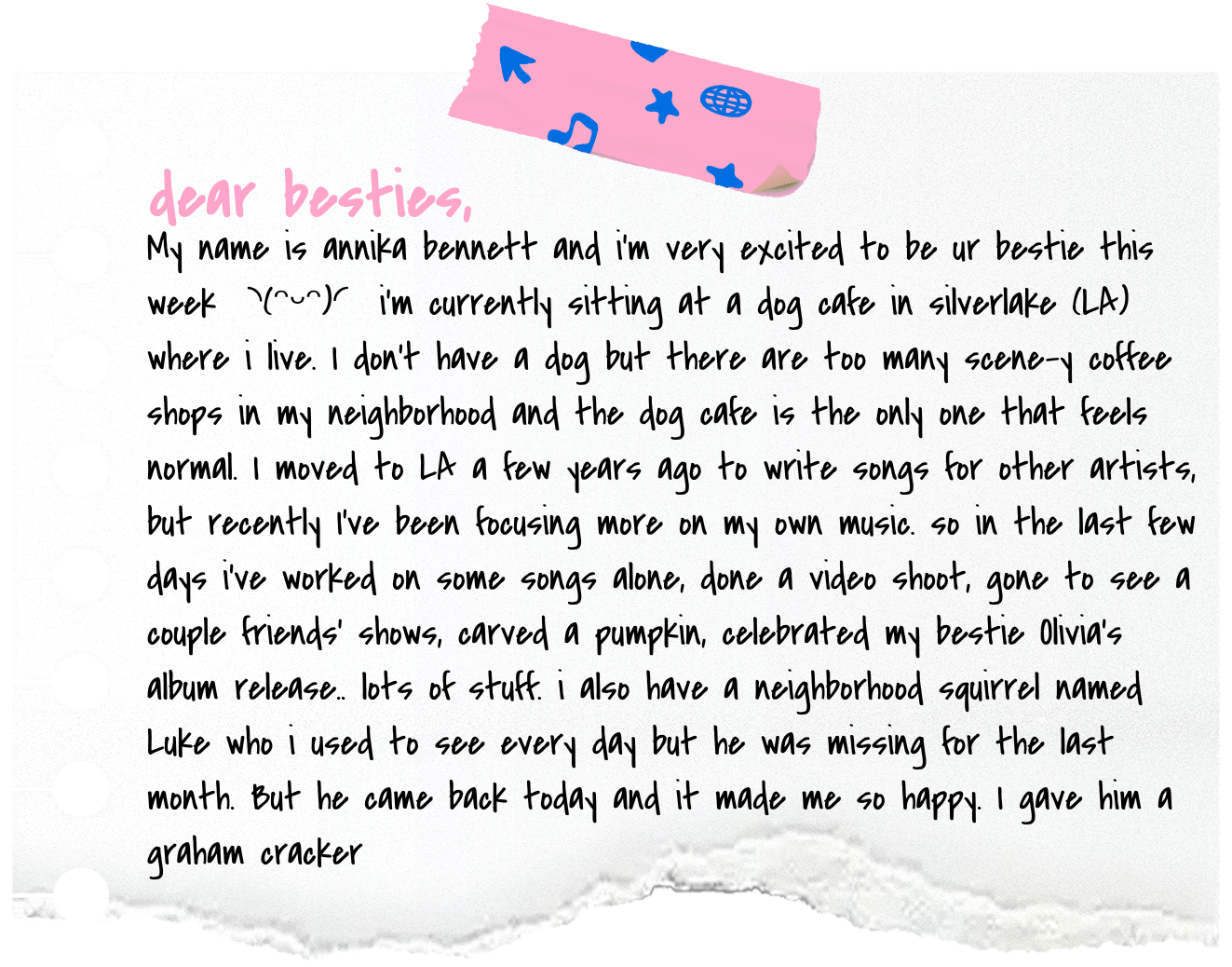 Thanks for hanging out with me. talk soon love u xooxoxoo -annika