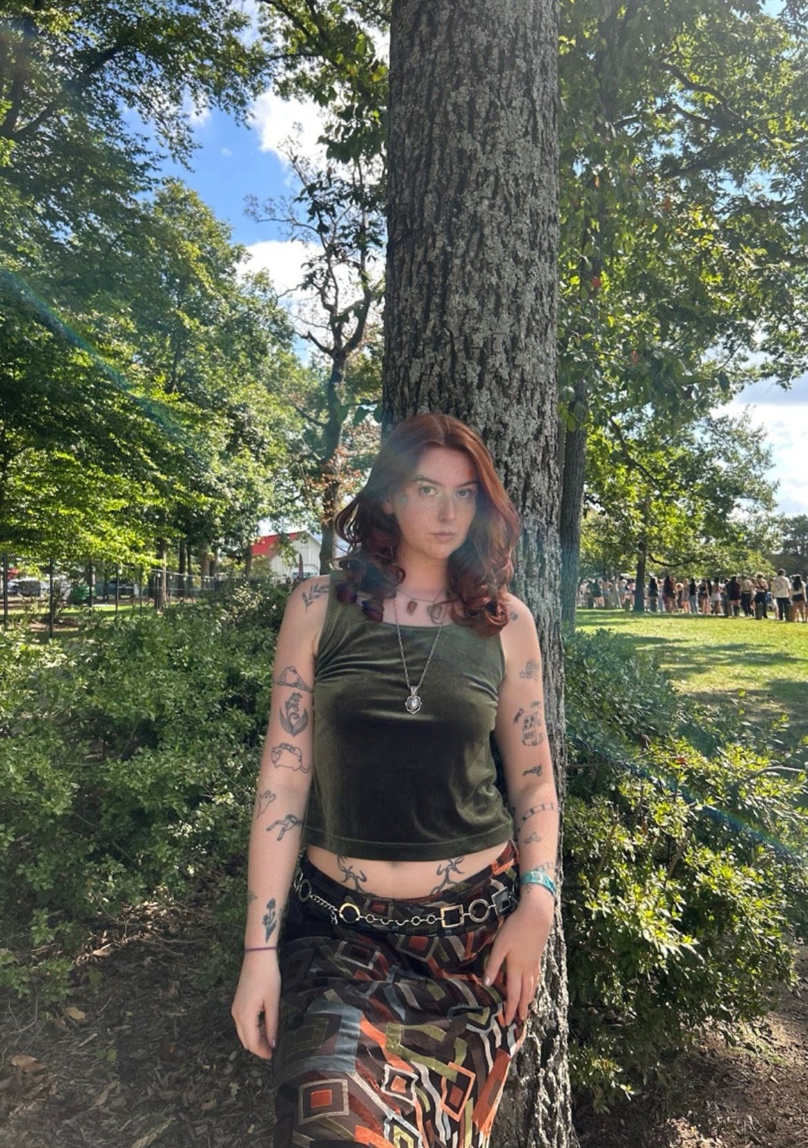 My day 1 fit is all thrifted, except for my sea glass necklace/earrings which were handmade by my best friend :) (@confetti_cake_mix on IG 💘)